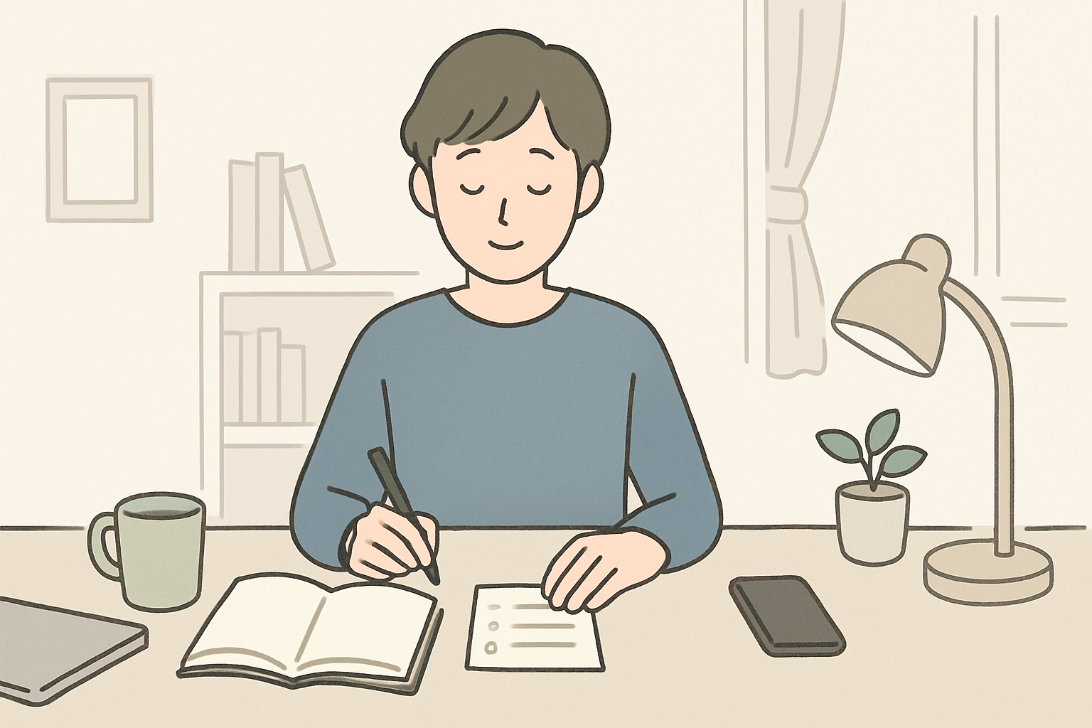 仕事で疲れている日は、難しい内容を深く理解しようとすると止まりやすいです。そんな日は、30分だけ座って、読む・線を引く・基本問題を数問解く、くらいで終えてもいいと決めています。